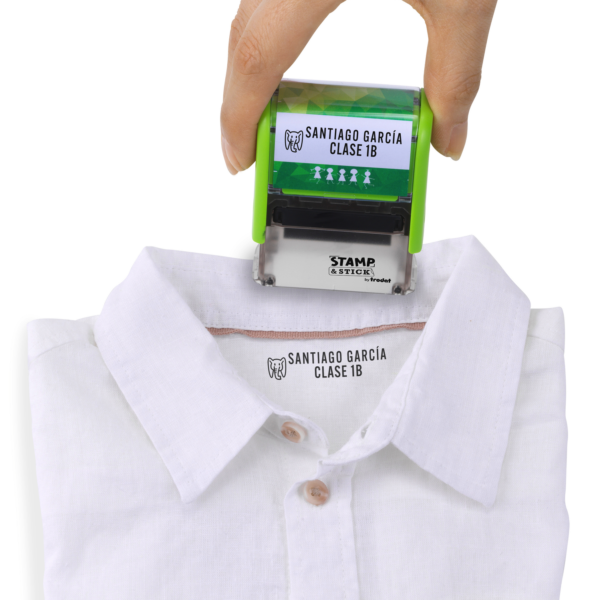 Con el sello Stamp & Stick, sella directo en tela y personaliza el texto tu mismo.